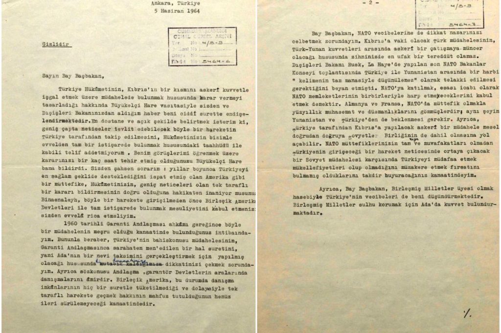 Ancak bu süreçte Türkiye ile ABD arasında diplomatik bir kriz yaşandı. 5 Haziran 1964 tarihinde, dönemin ABD Başkanı Lyndon B. Johnson, Türkiye Cumhurbaşkanı İsmet İnönü’ye hitaben bir mektup gönderdi. Bu belge tarihe “Johnson Mektubu” olarak geçti.